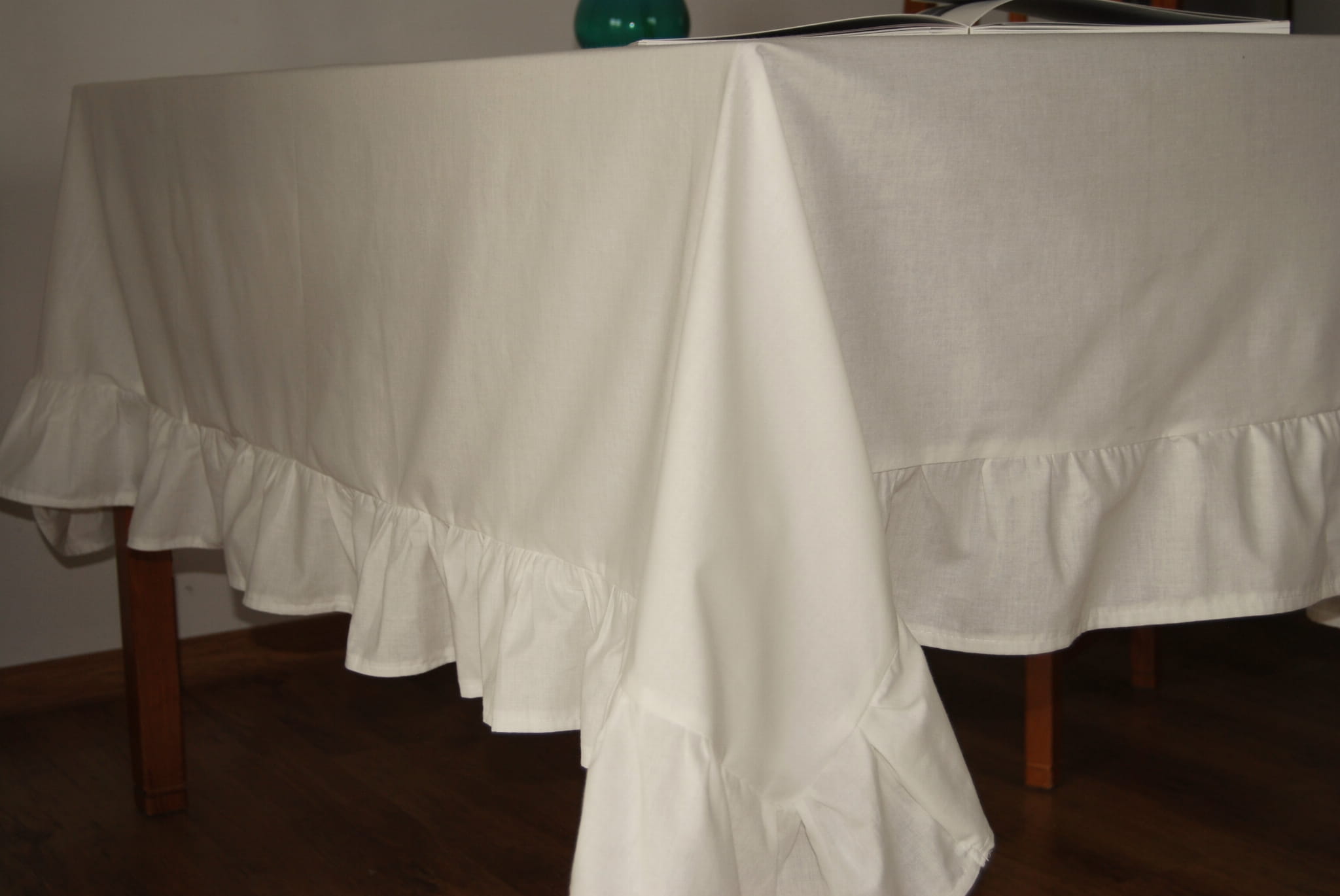 Obrus dostępny jest w kilku rozmiarach, aby obliczyć właściwy - do swojego blatu dodaj 25 - 40 cm z każdej ze stron.