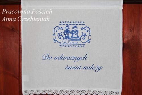 Makatka z haftem "Do odważnych świat należy"