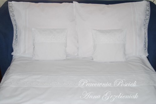 Komplet składa się z dwóch poszewek 70x80cm, dwóch poszewek 40x40cm oraz poszwy na kołdrę o wym. 200x220cm.