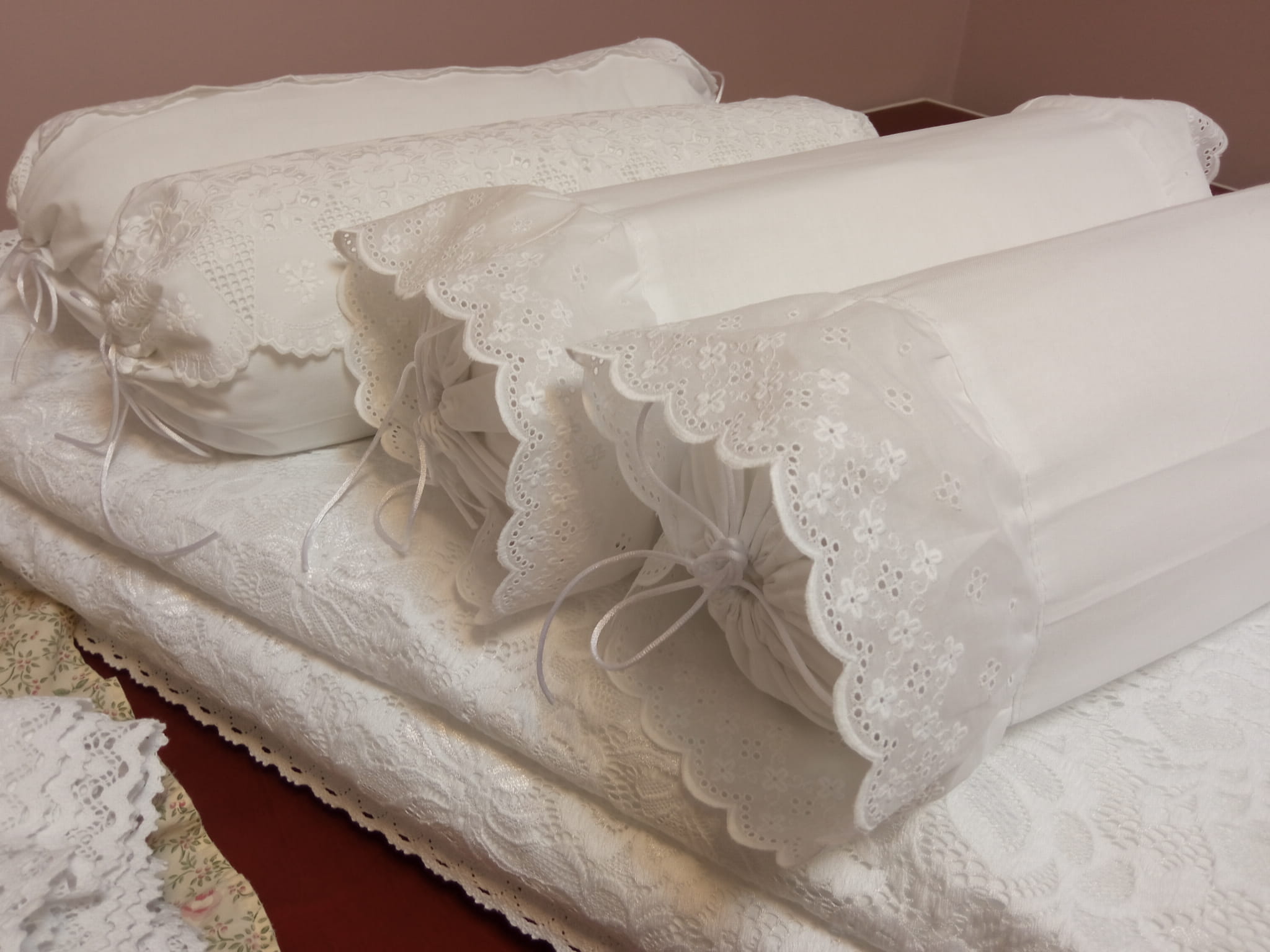 Wałek z haftowanymi falbankami